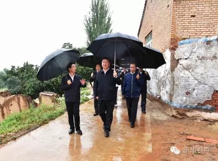 18日下午,雨還在下?倳泚(lái)到?jīng)茉纯h大灣鄉(xiāng)楊嶺村看望父老鄉(xiāng)親。
