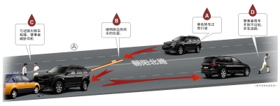 據(jù)目擊者介紹,事發(fā)時,一輛黑色本田CRV轎車由東向西行駛,突然刮倒了路中間高三四米測雨水的儀器,儀器被撞飛,黑色車輛失控沖入對面車道,“這時對面正好有輛出租車過來,兩車就撞上了”。兩車均受損嚴重,轎車零部件散落一地。