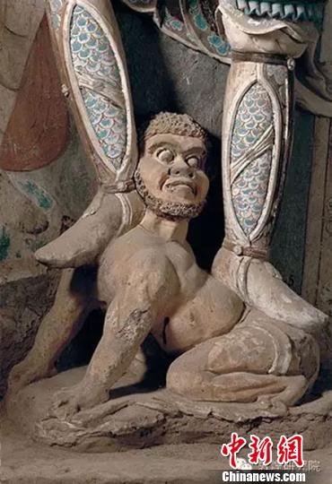 圖為莫高窟第288窟“善鬼”怒目藥叉(西魏)!《鼗脱芯吭汗﹫D 攝