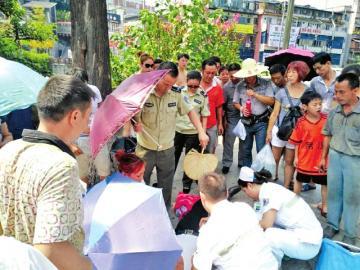 高溫中老人暈倒 四川自貢城管搖扇幫降溫(圖)