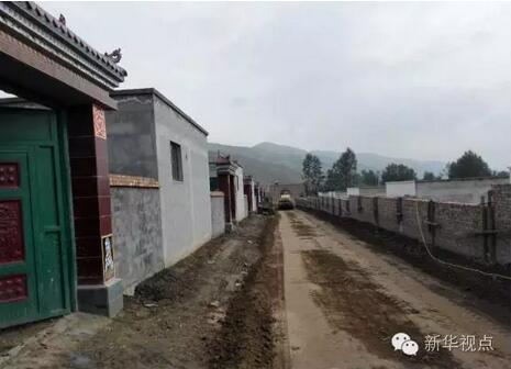 山坳里破舊的土坯房和山腳下正在興建的新村莊形成鮮明對(duì)比,詮釋出“天壤之別”的含義。