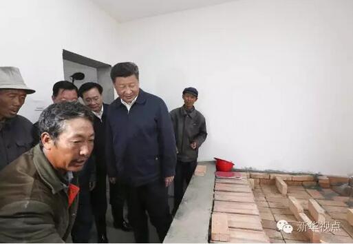 總書記察看房屋格局,了解施工進(jìn)展,關(guān)心火炕取暖效果。