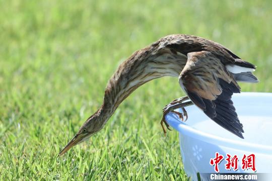 9月4日,一只翅膀受傷的大麻鳽出現(xiàn)在新疆哈巴河縣城一處草坪上!⑹呛 攝