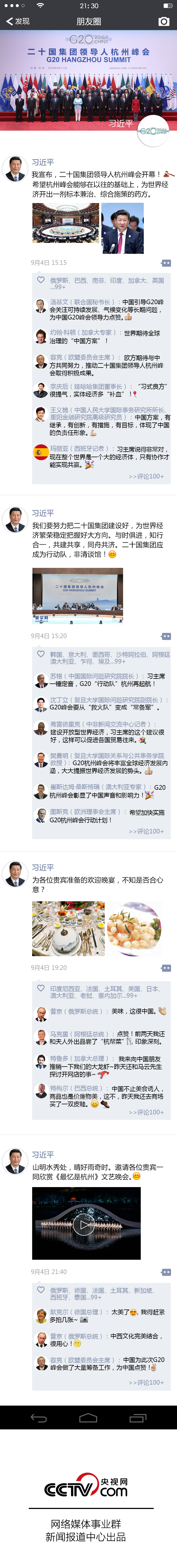 關(guān)鍵詞:朋友圈;主席;G20;發(fā)表評論;表態(tài)