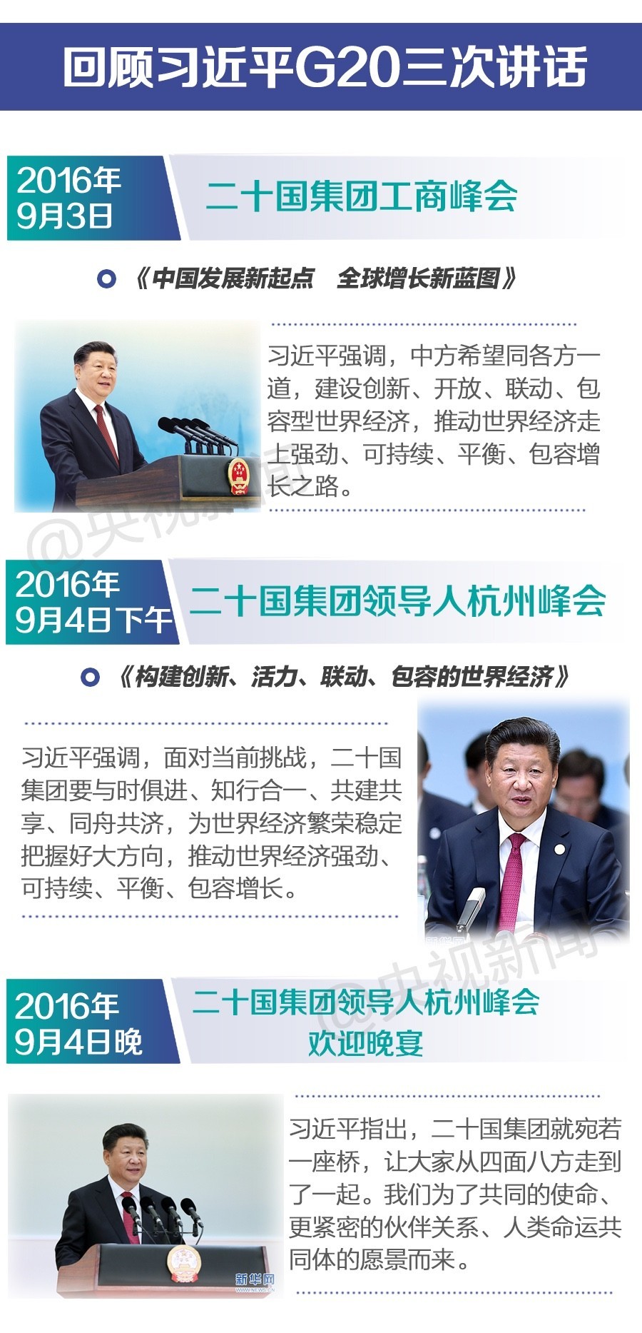 9月3日,2016年二十國集團(tuán)工商峰會(huì)開幕式上,國家主席習(xí)近平發(fā)表題為《中國發(fā)展新起點(diǎn) 全球增長(zhǎng)新藍(lán)圖》的主旨演講。