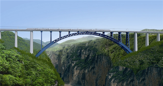 2016年5月10日順利實現(xiàn)轉(zhuǎn)體合龍的成貴高鐵西溪河大橋采用了雙向水平轉(zhuǎn)體結(jié)構(gòu),兩個各1.4萬噸的大橋拱體跨越了深切256米的西溪河峽谷,成都側(cè)半拱圈逆時針平轉(zhuǎn)120度,貴陽側(cè)順時針平轉(zhuǎn)133度,直至在空中實現(xiàn)高精度合龍(圖片來源網(wǎng)絡(luò))。
