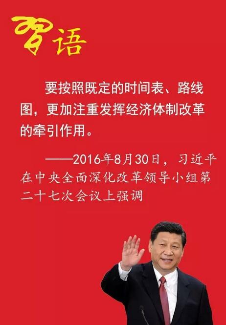 2016年8月30日,在中央全面深化改革領(lǐng)導(dǎo)小組第二十七次會(huì)議上,習(xí)近平強(qiáng)調(diào),要按照既定的時(shí)間表、路線圖,更加注重發(fā)揮經(jīng)濟(jì)體制改革的牽引作用。