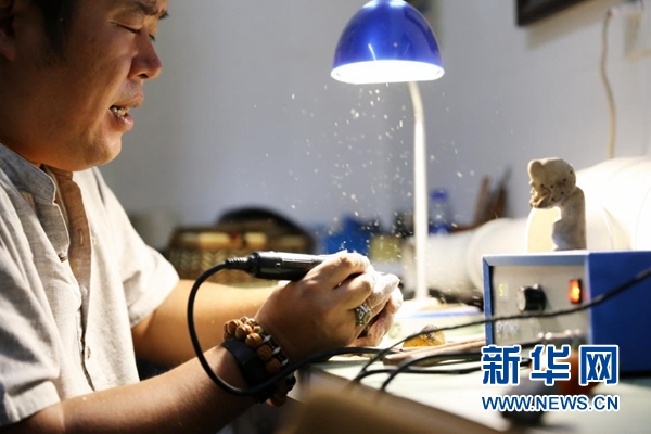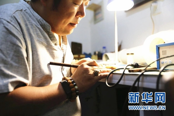 新華網北京9月29日電(記者 李旭)一把雕刻刀、一顆琥珀,他在工作室里專心于創(chuàng)作。80后的他身量微胖,聲音洪亮,坐在記者對面手拿雕刻刀在琥珀上雕刻紋樣,厚薄有度,剛柔相濟,精致的紋案慢慢顯現出來。每一塊琥珀都是大自然的精靈,而琥珀雕刻的背后凝聚著中國匠人的堅守、熱枕和執(zhí)著。