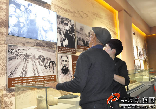 采訪活動啟動當天,紅軍長征紀念館吸引了全國各地的眾多游客前來參觀。一位步履蹣跚且患有眼疾的老人在一位年輕人的攙扶下,艱難的一步一步拾級而上步入紀念館。老人名叫李富貴,已80歲高齡,他通過電視、廣播多次看到聽到紅軍長征時的感人故事,一直有個心愿想詳細了解毛主席在寧夏5天4夜的那段歷史,感受紅軍長征留給后人寶貴的精神財富。在紀念館,目睹著許多歷史畫面和紅軍文物,老人不時熱淚盈眶。