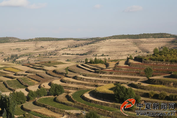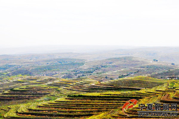 近年來,提到彭陽縣,大家腦海里迅速會浮現(xiàn)出一幅滿山杏花和壯美梯田的風景畫。9月27日,當采訪團的記者們來到彭陽時,站在百里畫廊麻喇灣生態(tài)旅游景區(qū)觀景臺上,面對一座座連綿起伏的綠色丘陵和層層疊疊的梯田,驚艷的美景讓記者們贊嘆不已?墒怯钟姓l能想到,1983年彭陽建縣時,這里基本與綠色無緣,自然條件之嚴酷堪稱寧夏之首。堅韌的彭陽人始終堅持生態(tài)立縣方針不動搖,繼承長征精神,發(fā)揚“彭陽精神”和“三苦作風”,一屆接著一屆干,一張藍圖繪到底,讓彭陽的山變綠了,水變清了,形成了生態(tài)治理小氣候,雨霧蒙蒙的景象在彭陽這片山區(qū)里成了?。