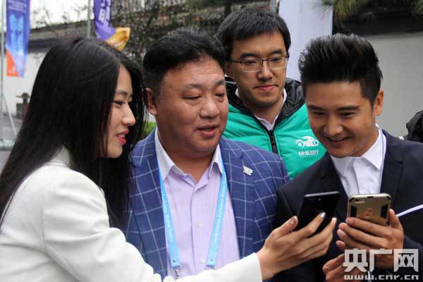 第一視頻領(lǐng)導(dǎo)為田亮演示快兔出行APP