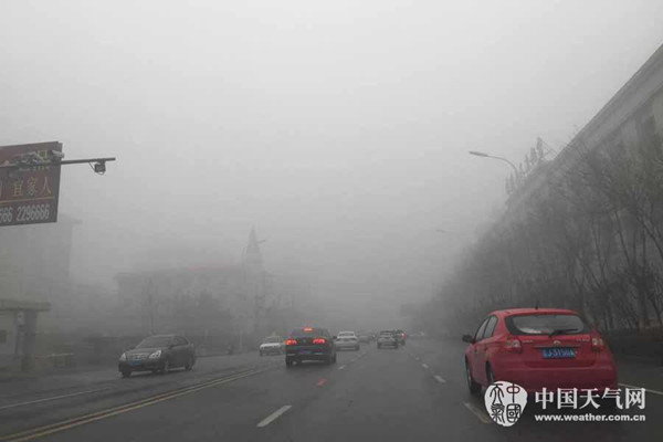 昨天早晨,遼寧阜新現(xiàn)濃霧天氣,能見度低。