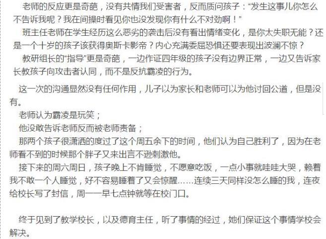 據(jù)了解,早在12月4日,這位母親就在某貼吧里發(fā)出了一篇名為《我經(jīng)歷的中關(guān)村二小》一文↓