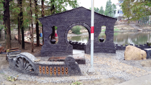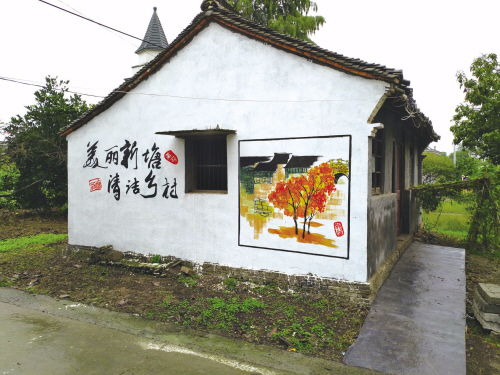 新塘村有了“柴磚銀行”,投資的是廢棄柴磚,收獲的是美麗庭院。記者漫步在新塘村,滿目皆是別具特色的創(chuàng)意景觀:或?yàn)橐欢录t磚青瓦的小矮墻,墻體虛實(shí)相間,虛處鏤空并用青灰色的瓦片砌成不同圖案,非常生動(dòng);或?yàn)榕R河“甕墻”,在河畔婆娑的綠葉下生機(jī)盎然,散發(fā)著復(fù)古的氣息;或?yàn)橐蛔づ_(tái)假山;或?yàn)橐幻娣蹓,雪白的墻面題著古詩畫著栩栩如生的水村漁市……無不叫人心曠神怡。