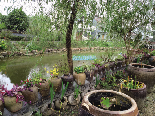在新塘村,一道道用磚塊、瓦片、老缸、老壇子等大量鄉(xiāng)村閑散物甚至是廢棄物所建造的非常養(yǎng)眼的小品景觀,時(shí)不時(shí)地就會(huì)迎來成群結(jié)隊(duì)的攝影愛好者,讓他們贊不絕口,這都是因?yàn)榇謇锏摹安翊u銀行”。