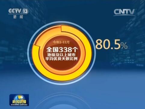 強作為帶來深改變。今年1-11月全國338個地級及以上城市空氣質(zhì)量平均優(yōu)良天數(shù)比例為80.5%,總體呈改善趨勢。