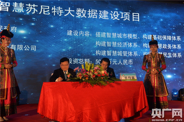 蘇尼特右旗人民政府還與多家企業(yè)進行了簽約儀式。(薩其拉 攝)