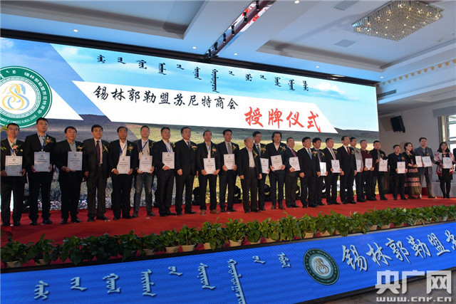 隆重而充滿鄉(xiāng)情的錫林郭勒盟蘇尼特商會授牌儀式。(薩其拉 攝)