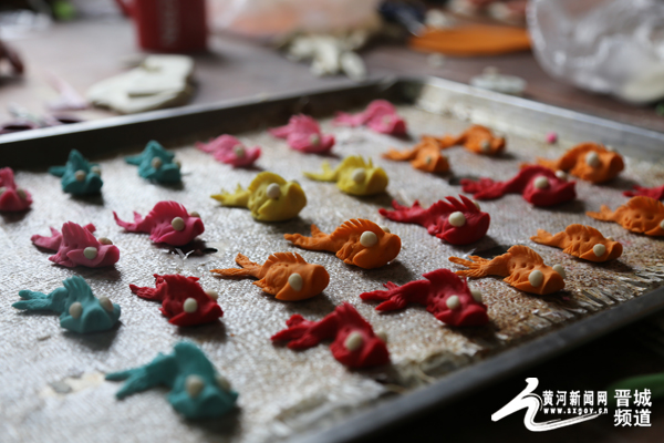 做花饃可是個(gè)費(fèi)時(shí)費(fèi)力的活兒,“每個(gè)花饃的制作,工藝都相當(dāng)講究,要經(jīng)過凝水、和面、制酵、揉面、捏形、醒饃、蒸制、著色、插面花等多道工序!彼未淝龠呎f邊演示著精巧的制作工藝、復(fù)雜的工序流程。一團(tuán)面經(jīng)過宋翠琴輕巧靈動(dòng)的雙手,再借助一些工具,就變成了一件件活靈活現(xiàn)、造型精致的花饃。