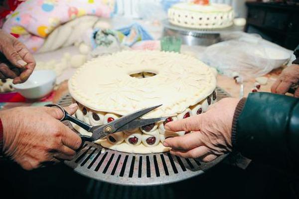 剪去花饃底座上多余的面,這樣看起來(lái)更圓更好看。