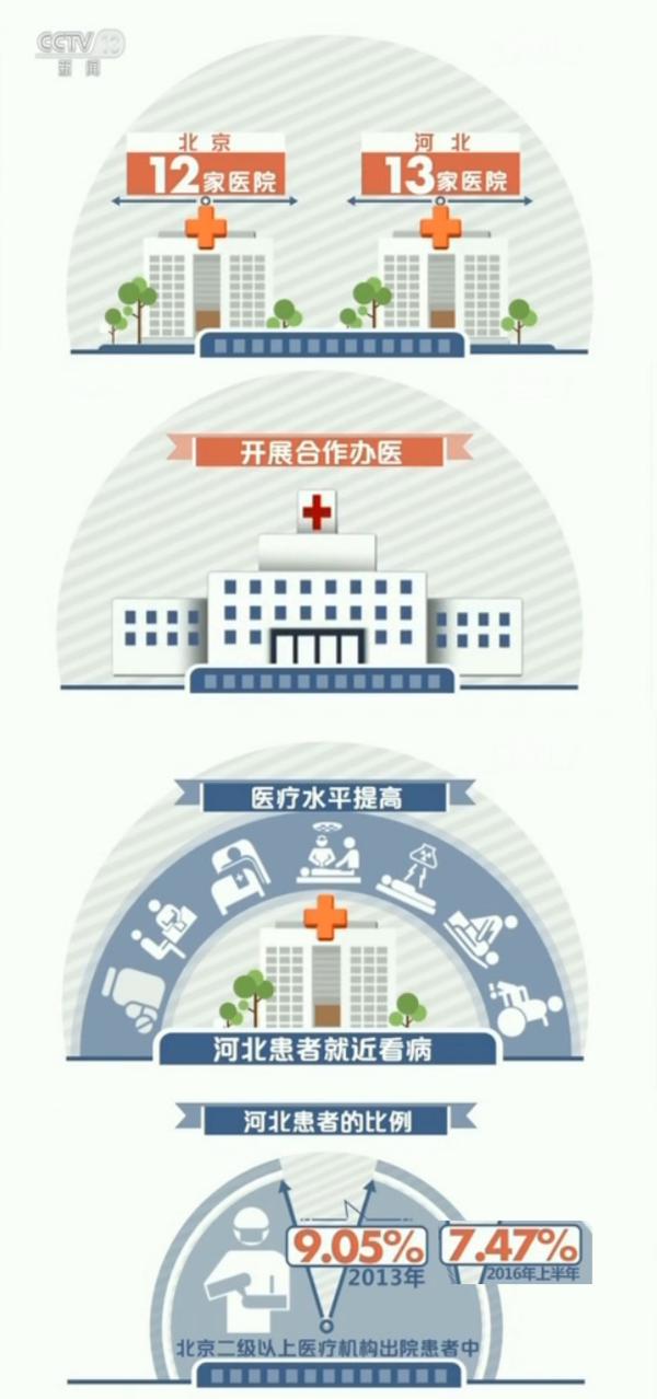 目前,北京已有12家醫(yī)院與河北13家醫(yī)院開展合作辦醫(yī)。醫(yī)療水平的提高,讓不少河北患者選擇了在家門口就近看病。2016年上半年,北京二級以上醫(yī)療機構出院患者中,河北患者的比例從2013年的9.05%下降到7.47%。