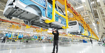 京籍藥企落戶,北京現(xiàn)代滄州工廠投產(chǎn),北京批發(fā)商戶開業(yè)……在京津冀協(xié)同發(fā)展的大潮下,千年古城河北滄州悄然發(fā)生蛻變,成為一片熱土。圖為工人在北汽集團(tuán)黃驊分公司總裝車間生產(chǎn)線上工作。 新華社記者 牟宇攝