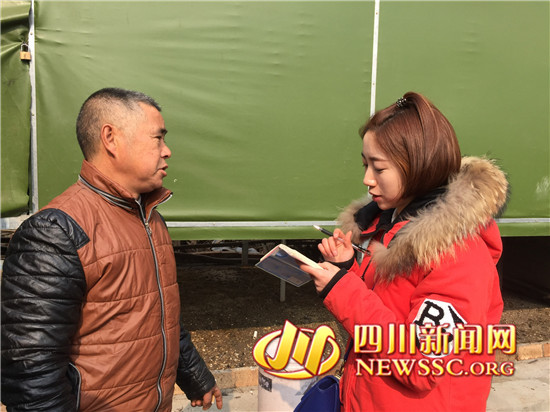 1月23日,楊顏銘在資陽高鐵北站采訪客運值班員曾楊。