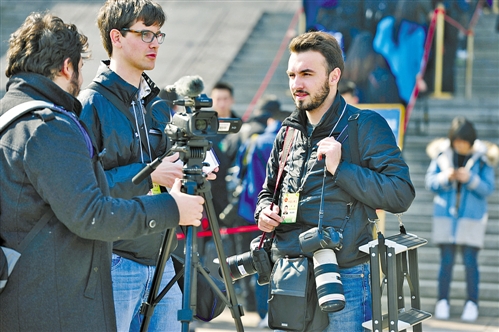 3月3日,全國政協(xié)十二屆五次會議在北京人民大會堂開幕,參與報道中國兩會的外國媒體記者準備進入會場采訪。 本報記者 高興貴攝