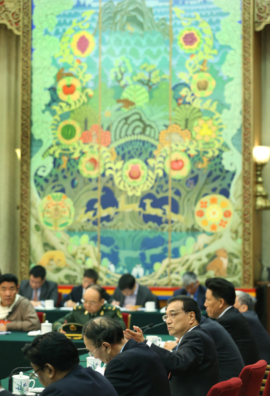 【李克強(qiáng)指示有關(guān)部門負(fù)責(zé)人:西藏代表提出的意見建議要“件件有回應(yīng)”】李克強(qiáng)7日上午參加十二屆全國人大五次會(huì)議西藏代表團(tuán)審議時(shí),代表們就扶貧、基礎(chǔ)設(shè)施、公共服務(wù)等提出不少意見建議?偫碇甘驹趫龅膰鴦(wù)院有關(guān)部門負(fù)責(zé)人,能辦的要竭盡全力辦,即便暫時(shí)辦不了,也要努力推動(dòng)。必須件件有回應(yīng)!