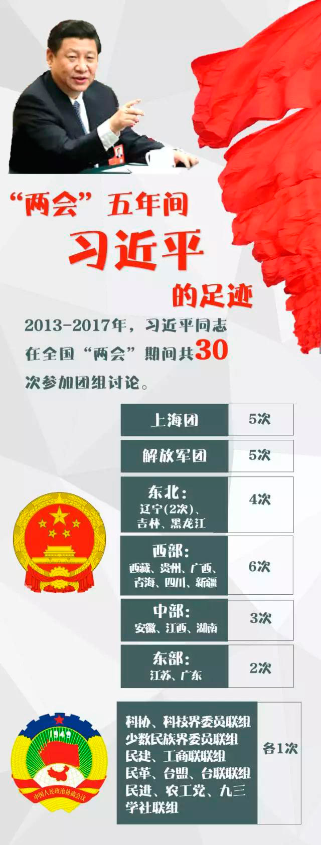 央視網(wǎng)消息:2013年-2017年,習(xí)近平同志在全國(guó)“兩會(huì)”期間共30次參加團(tuán)組討論。下面跟小編一起回顧下。