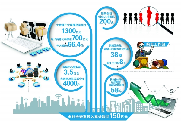 2014年貴州GDP首超9000億元,提前一年完成“十二五”8400億元的目標(biāo)任務(wù);其中,以大數(shù)據(jù)為引領(lǐng)的電子信息產(chǎn)業(yè)實現(xiàn)規(guī)?偭1460億元,同比增長62%。