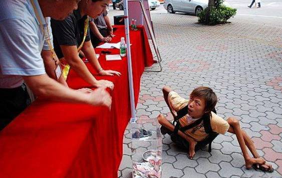 不能忘記,“地震最感人乞丐” 龔忠誠用手“走”著,先后四次把全部乞討所得投進募捐箱;