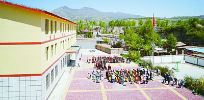 青海互助縣納家村,孩子們?cè)诩{家小學(xué)廣場(chǎng)上進(jìn)行“六一”文藝演出。光明日?qǐng)?bào)記者趙斌藝攝/光明圖片