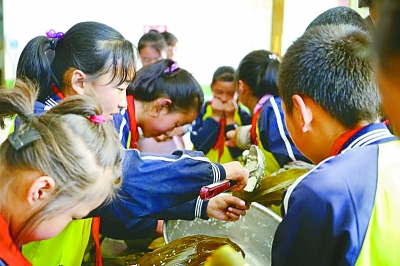 青;ブh納家村,納家小學(xué)的孩子們正在學(xué)習(xí)包粽子。光明日?qǐng)?bào)記者趙斌藝攝/光明圖片