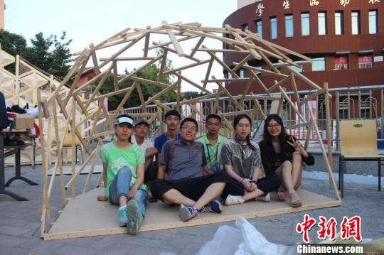 中新網(wǎng)北京6月5日電 (記者 馬海燕)第二屆北京建造節(jié)5日在北京交通大學(xué)舉辦。共有來自清華大學(xué)、北京交通大學(xué)、天津大學(xué)、中國礦業(yè)大學(xué)(北京)、中央美術(shù)學(xué)院、北方工業(yè)大學(xué)、北京工業(yè)大學(xué)、北京建筑大學(xué)、北京林業(yè)大學(xué)、北京城市學(xué)院、河北工業(yè)大學(xué)、河北建筑工程學(xué)院以及北京匯文中學(xué)、北方交通大學(xué)附屬中學(xué)等14所京津冀地區(qū)高校、中學(xué)共計47組學(xué)生組隊參加。