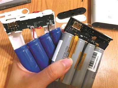 業(yè)內(nèi)人士告訴北青報記者,現(xiàn)在市面上銷售的充電寶所用電池為柱狀的18650電池和類似手機電池的片狀聚合物鋰電池,而“小作坊”制作的充電寶有的用的是北青報記者買到的真電池,但是含電量很小,有的用的則是真電池與假的“水泥電池”進行混裝充重。
