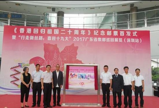 《香港回歸祖國二十周年》紀(jì)念郵票由香港設(shè)計師韓秉華設(shè)計,北京郵票廠影寫版印制。郵票運(yùn)用富有透視感與深度感的構(gòu)圖和精致簡練的標(biāo)志性建筑描繪出了香港獨(dú)特的魅力與個性。 在郵票首發(fā)式上,同時舉行了“行走新絲路,喜迎十九大”2017廣東省集郵巡回展覽(深圳站)開幕式。本次集郵展覽重點(diǎn)以“復(fù)興路”為主題,突出展示香港回歸及深圳改革開放相關(guān)題材郵集,展現(xiàn)香港與祖國內(nèi)地共享繁榮、追求卓越的過程和“一帶一路”所取得的偉大成就,詮釋復(fù)興路的偉大意義。