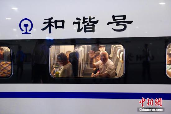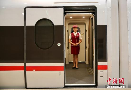 6月26日,在北京南站等待首發(fā)的“復(fù)興號”高鐵動車組乘務(wù)員迎接乘客到來。中新網(wǎng)記者 翟璐 攝