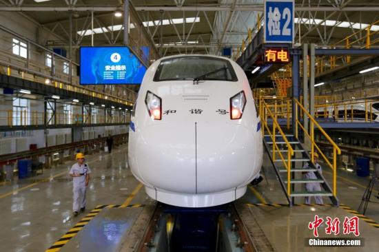 圖為昆明南站工作人員檢查動車。中新社記者 任東 攝