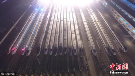 2017年2月6日,重慶,每天早上零點(diǎn)2點(diǎn)后,所有的動車都要入庫檢修,以保障著春運(yùn)的安全。 圖片來源:視覺中國