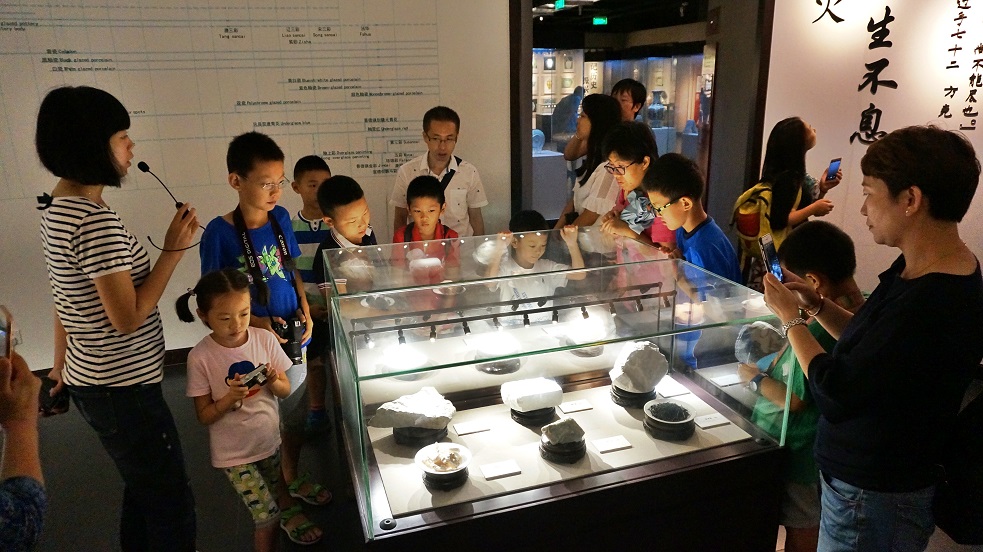在博物館工作人員的認真解說下,小朋友們在造瓷藝術(shù)的世界中遨游。從兩漢青瓷到宋代五大名窯,從舉世矚目的元青花到當(dāng)代瓷藝大師們的作品,無一不令人神往。大家驚嘆于“雨過天晴云破處”的青瓷呈色,也驚艷于當(dāng)代G20峰會指定用瓷的淡雅脫俗,小朋友們紛紛用手中的相機記錄對古典陶瓷藝術(shù)的美好印象。