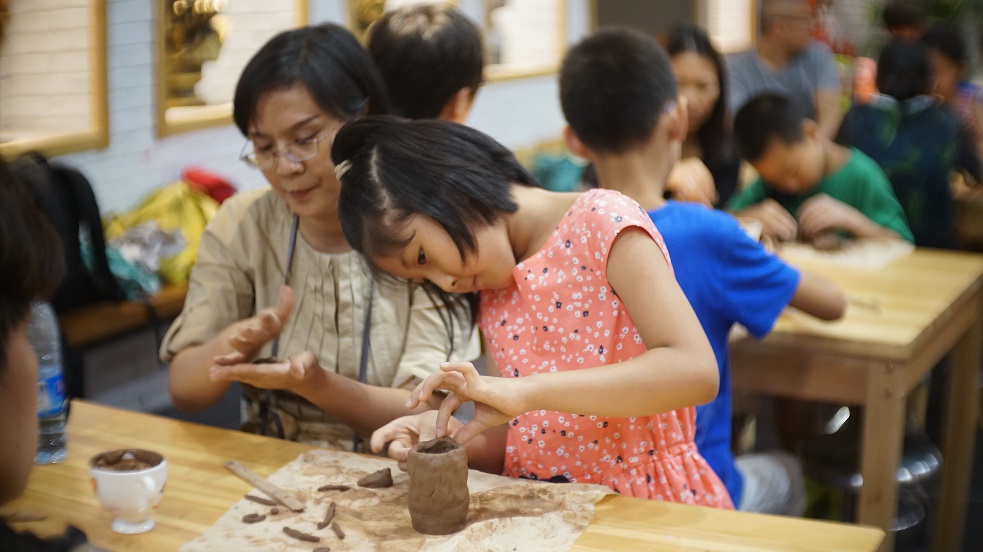 據(jù)活動主辦方介紹,組織本次活動的目的是希望孩子們能夠直觀地感受陶瓷藝術(shù)這一國粹,而不僅是通過教科書或隔著博物館的展示柜去被動接受知識!跋M尯⒆觽兺ㄟ^自己的雙手,將一捧泥、一汪水變成自己引以為傲的一件作品,以生活美學(xué)的形式營造孩子們與傳統(tǒng)文化的親近感!