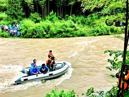 40人送葬隊(duì)伍被困消防拋繩擺渡實(shí)施救援