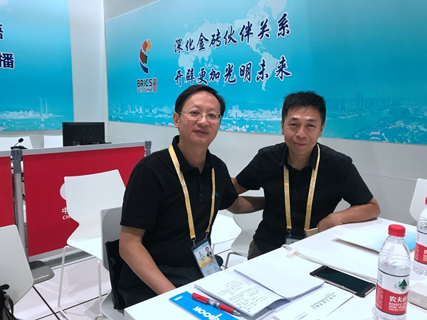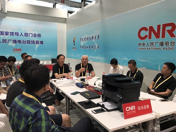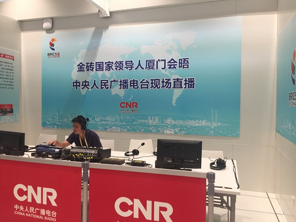 位于金磚國家領(lǐng)導(dǎo)人廈門會晤新聞中心的中央人民廣播電臺直播間
