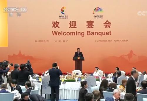 金磚國(guó)家領(lǐng)導(dǎo)人第九次會(huì)晤歡迎宴會(huì):習(xí)近平主席致辭