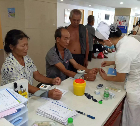 63歲的維新村村民陳玉鳳(左一)正在醫(yī)院接受檢查。