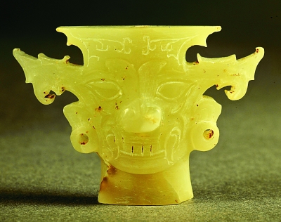 ④湖北石家河遺址出土的玉人頭像。方勤供圖