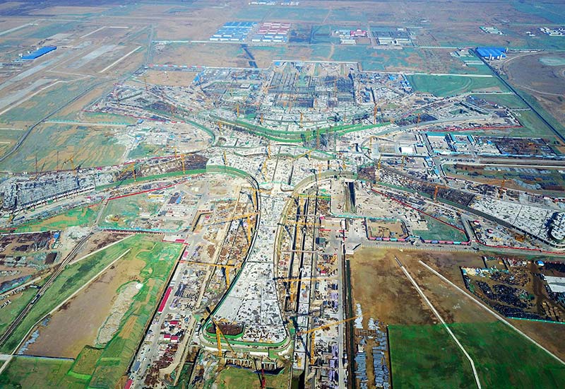 這是正在施工的北京新機(jī)場主航站樓(2月24日攝)。