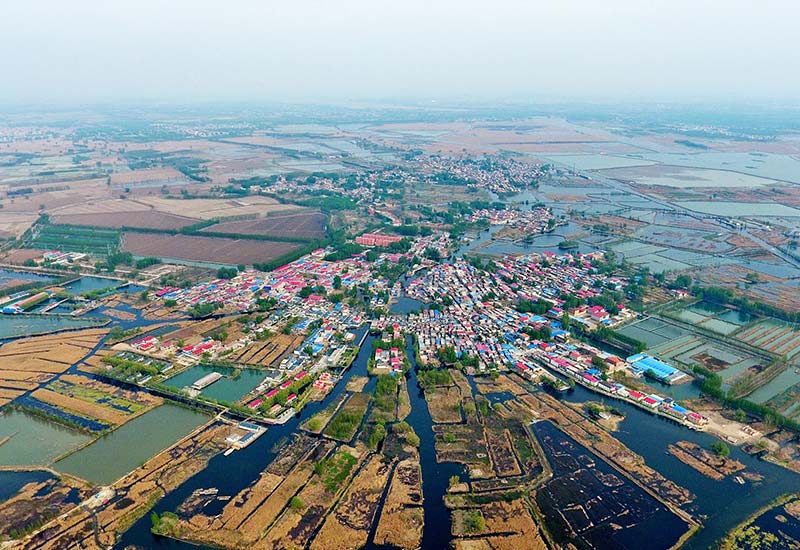 這是河北雄安新區(qū)白洋淀內(nèi)的村莊(4月9日攝)。