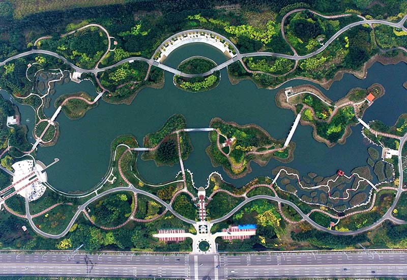 俯瞰天津濱海新區(qū)臨港經(jīng)濟(jì)區(qū)的臨港生態(tài)濕地公園(2016年10月21日攝)。